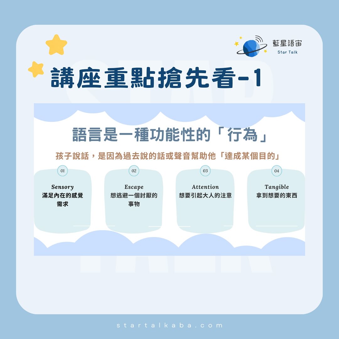 這場講座特別為家長、照顧者還有對孩子語言發展有興趣的朋友準備!如果你的孩子有語言發展慢、溝通困難,甚至常用哭鬧或發脾氣來表達需求,這場講座會給你滿滿的收穫。