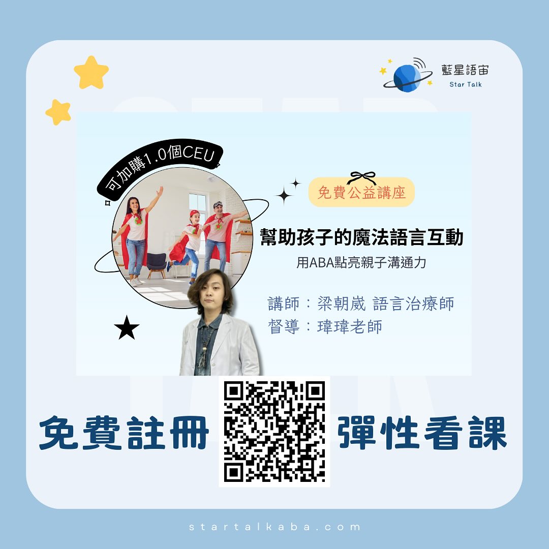 若您具有 BACB / BCaBA / IBA / IBT 等專業身份,並需要取得 CEU 認證,本講座可額外加購 1.0 個 CEU(Learning CEU 與 ABA 技術類 CEU 各可申請)。