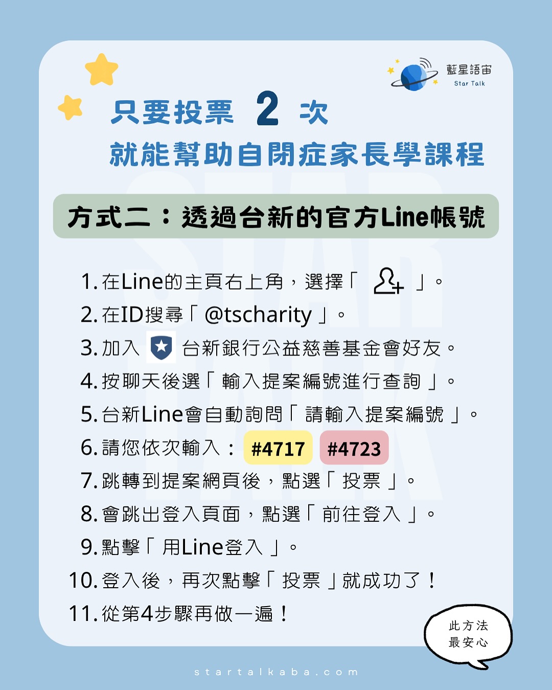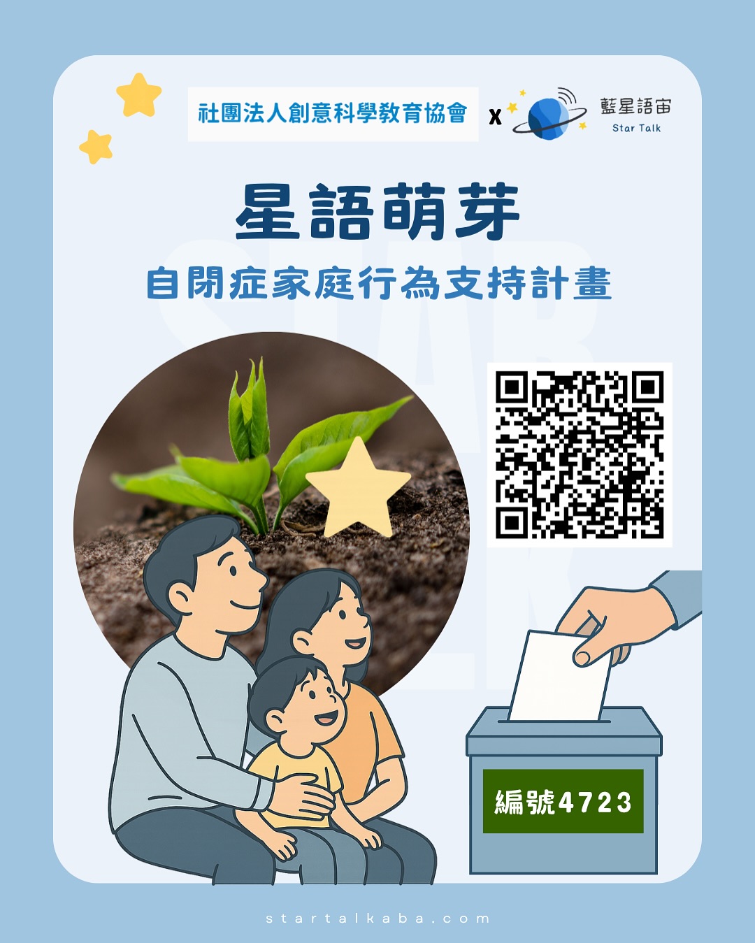 需要您寶貴的 2票,就能讓更多家長 免費學習行為治療策略,把愛變成真正能幫助孩子的力量!