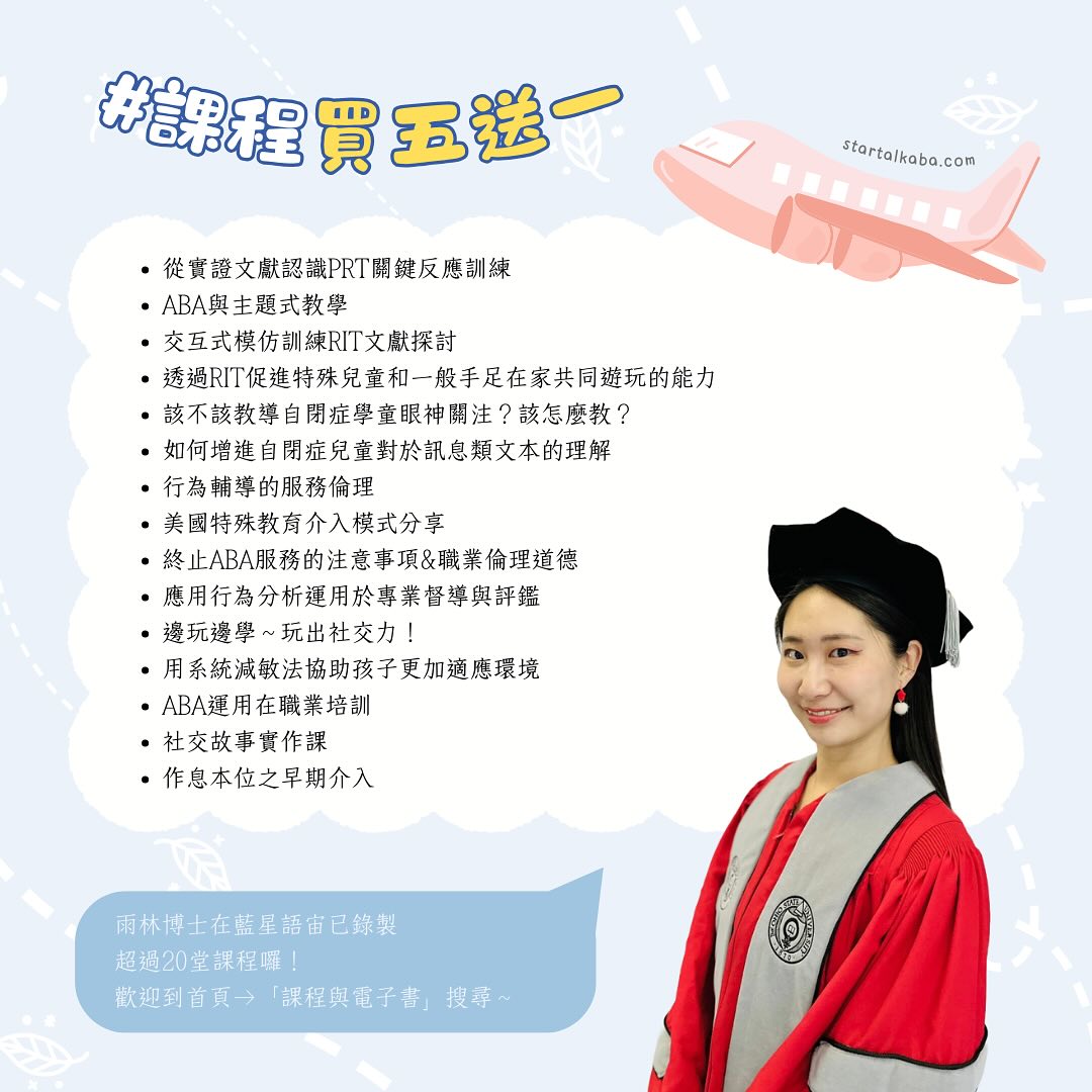 雨林博士持證5年好康大放送 留言 / 好康放送, 宣傳 / 2024-08-19 我的選擇就是-全都要 你們的心聲藍星語宙都聽到了,慶祝雨林博士 @yuling_bcba 持證滿5週年,經典課程買五送一!Bonus好康活動底加 #免費教學資源 只要單筆購買雨林博士五堂課即加贈1堂課30 min 視訊諮詢 (記得在8月底之前先預約好時間唷) 免費領取230張教學必備圖卡!(適用於命名教學、VB-MAPP評估、PECS) 第一步:按讚追蹤 @startalkaba @yuling_bcba 第二步:將本文按讚 第三步:分享本文到限動 第四步:貼文底下留言+tag 您的五位好友 持證5年是身為#BCBA的一個大里程碑,因為第一年持證的BCBA,如果要督導需要考證和累積時數的學員,必須要有持證滿5年的BCBA作為督導。 剛考上BCBA的你,成為更頂尖的 #行為分析大師 之路就從藍星語宙開始吧! 更多詳情可以參考內文也可以在免費30分鐘視訊諮詢時提出! #記得右滑詳見活動辦法 #跟著我們一起成為最強行為分析師 #免費教學資源分享 #行為分析 #ABA專業發展 #藍星語宙ABA #BCBA教育 #行為分析課程