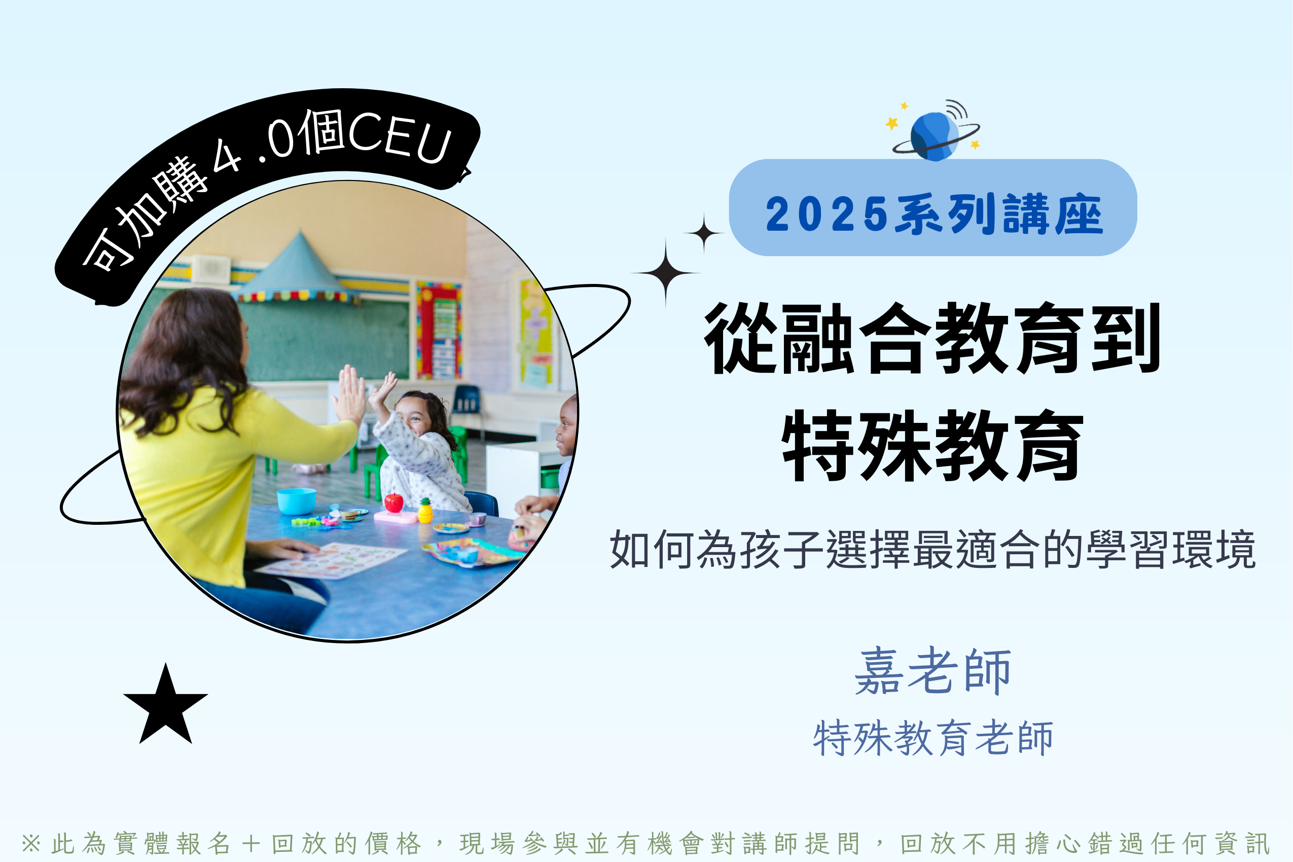 主題:從融合教育到特殊教育—如何為孩子選擇最適合的學習環境(已開放回放)
